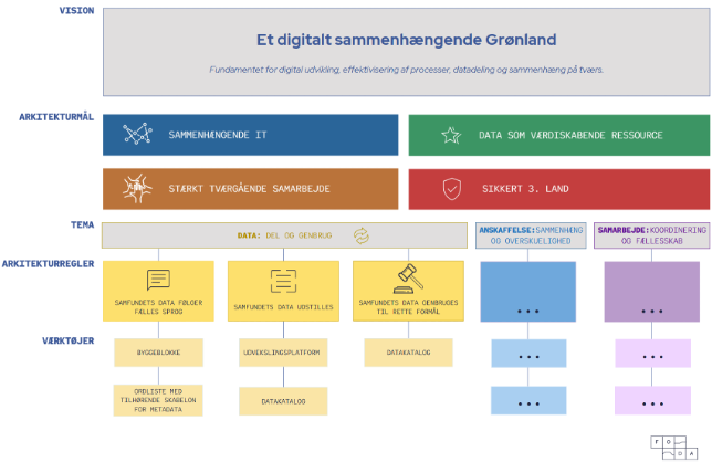 FODA er under konstant udvikling og bygger på nuværende tidspunkt på tre centrale temaer, der danner grundlag for arkitekturregler og værktøjer: